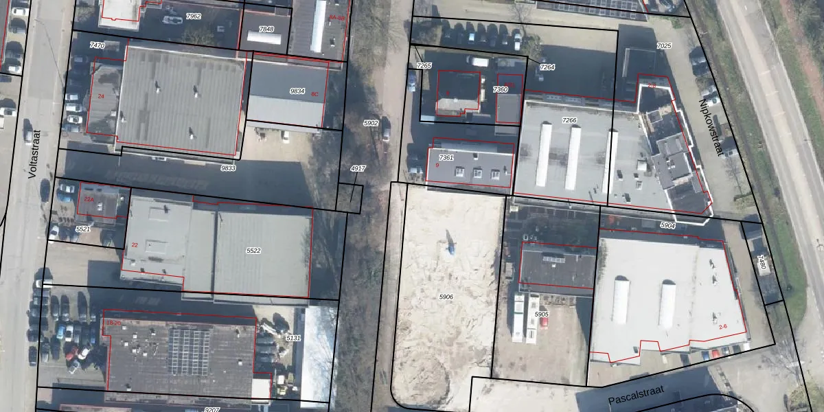 Het perceel waarop Pascalstraat 8-F staat heeft een oppervlakte van 1255 m². Dit is een zeer groot perceel. De perceeloppervlakte wordt geregistreerd door het Kadaster. Gedetailleerde informatie over de maten van dit perceel kunt u vinden in het rapport Kadastrale kaart met maatvoering van Pascalstraat 8-F.