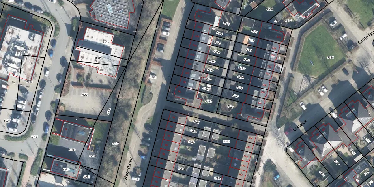 Het perceel waarop Raperbeek 96 staat heeft een oppervlakte van 255 m². Dit is een middelgroot perceel. De perceeloppervlakte wordt geregistreerd door het Kadaster. Gedetailleerde informatie over de maten van dit perceel kunt u vinden in het rapport Kadastrale kaart met maatvoering van Raperbeek 96.
