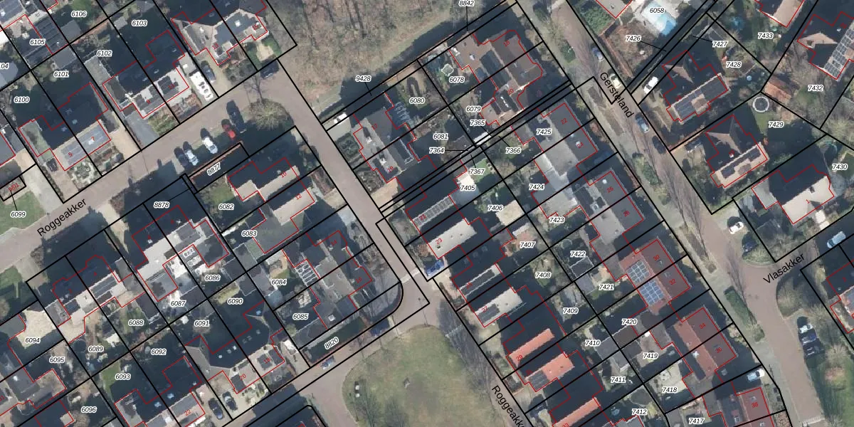 Roggeakker 21 is gelegen op kadastraal perceel BNV00C7405. Deze kadastrale aanduiding is uniek en wordt gebruikt door het Kadaster om eigendomsrechten en andere zakelijke rechten vast te leggen. Het perceel maakt onderdeel uit van de kadastrale gemeente Barneveld.
