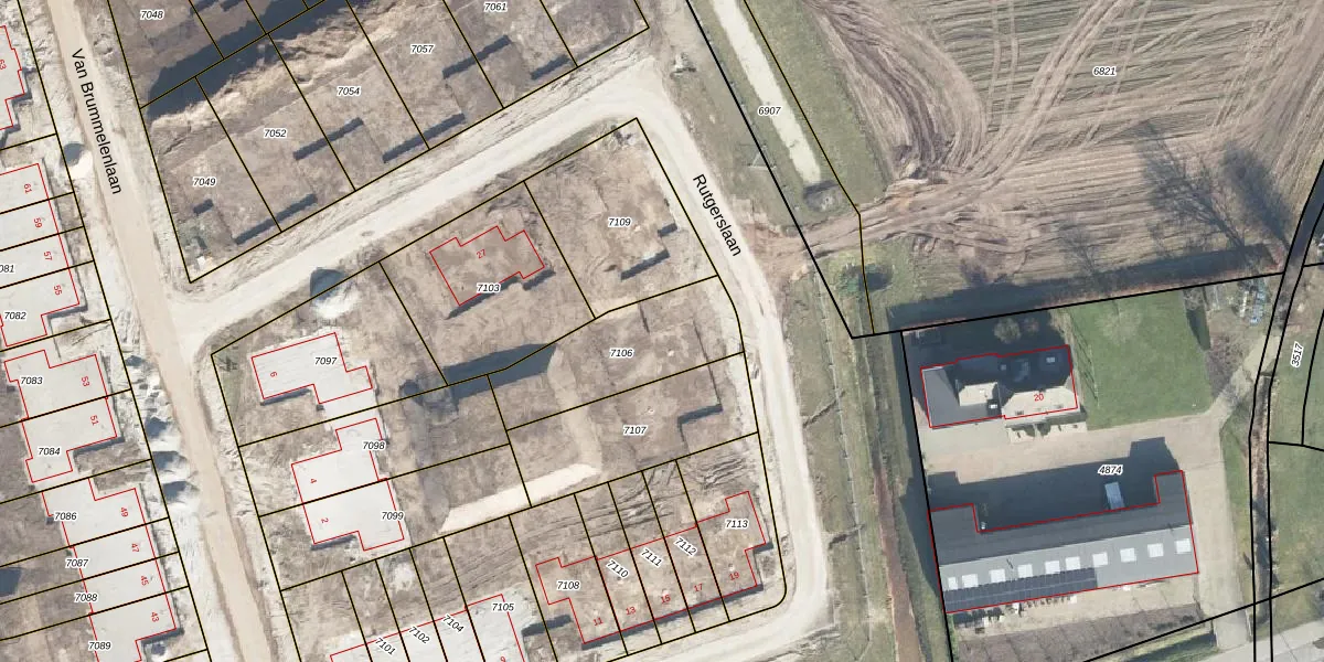 Rutgerslaan 23 is gelegen op kadastraal perceel BNV00E7106. Deze kadastrale aanduiding is uniek en wordt gebruikt door het Kadaster om eigendomsrechten en andere zakelijke rechten vast te leggen. Het perceel maakt onderdeel uit van de kadastrale gemeente Barneveld.