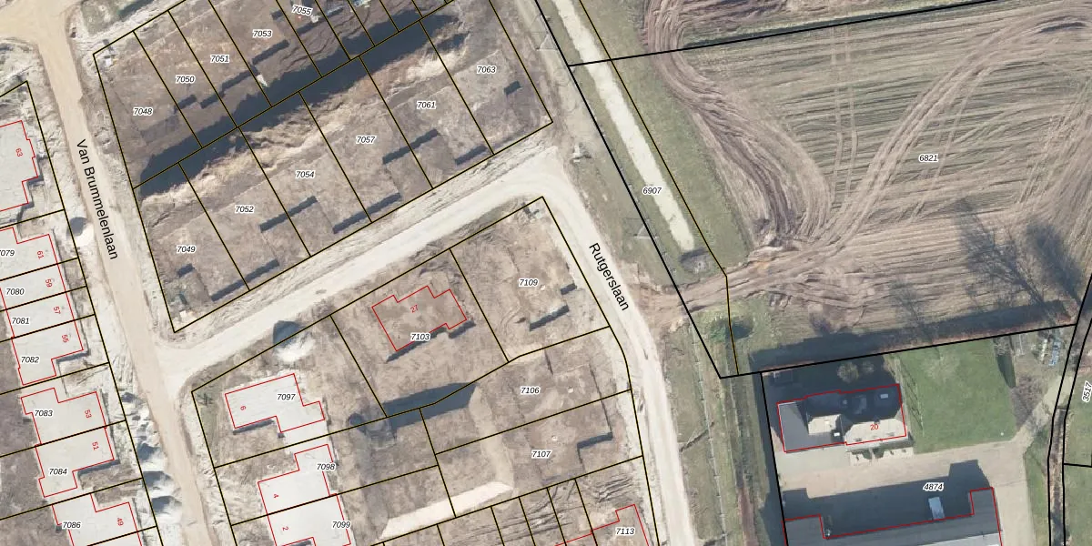 Rutgerslaan 25 is gelegen op kadastraal perceel BNV00E7109. Deze kadastrale aanduiding is uniek en wordt gebruikt door het Kadaster om eigendomsrechten en andere zakelijke rechten vast te leggen. Het perceel maakt onderdeel uit van de kadastrale gemeente Barneveld.