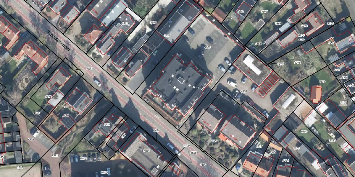 Schoutenstraat 72-E is gelegen op kadastraal perceel BNV00G4006. Deze kadastrale aanduiding is uniek en wordt gebruikt door het Kadaster om eigendomsrechten en andere zakelijke rechten vast te leggen. Het perceel maakt onderdeel uit van de kadastrale gemeente Barneveld.
