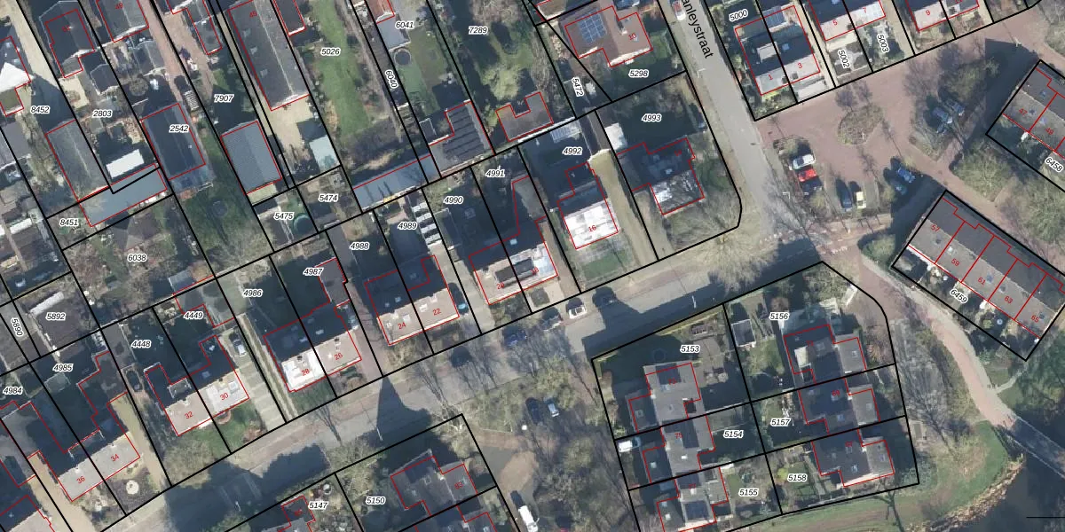 Stanleystraat 18 is gelegen op kadastraal perceel BNV00G4991. Deze kadastrale aanduiding is uniek en wordt gebruikt door het Kadaster om eigendomsrechten en andere zakelijke rechten vast te leggen. Het perceel maakt onderdeel uit van de kadastrale gemeente Barneveld.