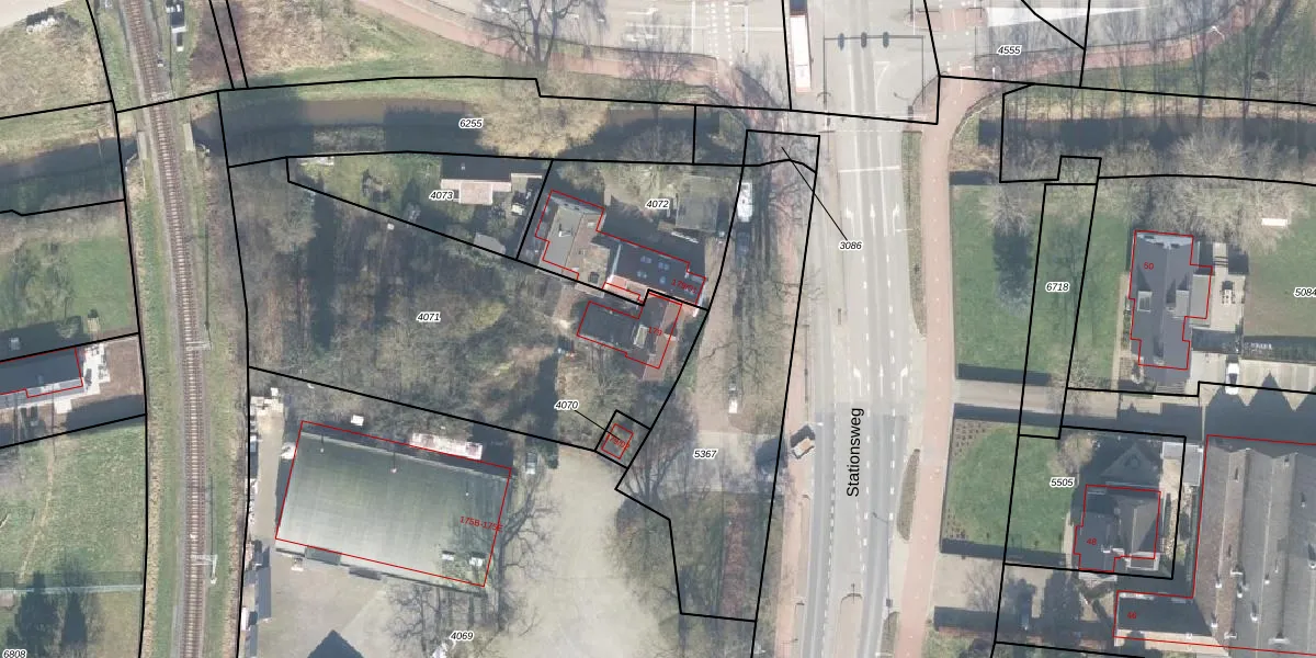 Het perceel waarop Stationsweg 179 staat heeft een oppervlakte van 1805 m². Dit is een zeer groot perceel. De perceeloppervlakte wordt geregistreerd door het Kadaster. Gedetailleerde informatie over de maten van dit perceel kunt u vinden in het rapport Kadastrale kaart met maatvoering van Stationsweg 179.