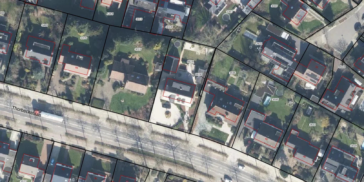 Thorbeckelaan 52 is gelegen op kadastraal perceel BNV00B6615. Deze kadastrale aanduiding is uniek en wordt gebruikt door het Kadaster om eigendomsrechten en andere zakelijke rechten vast te leggen. Het perceel maakt onderdeel uit van de kadastrale gemeente Barneveld.