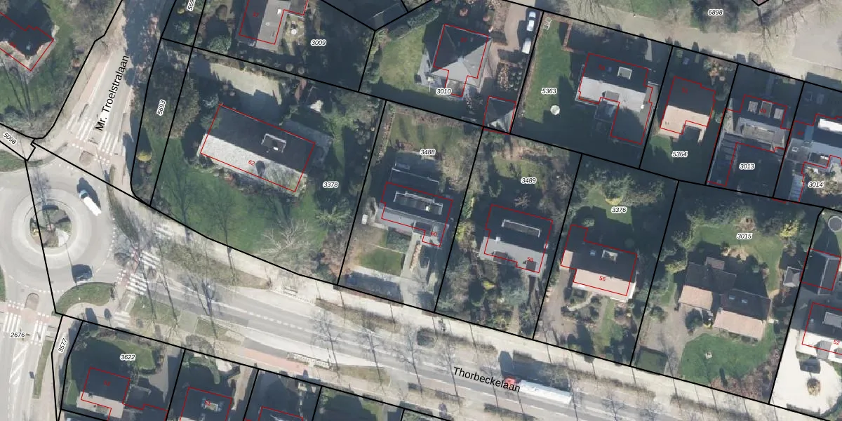 Thorbeckelaan 60 is gelegen op kadastraal perceel BNV00B3488. Deze kadastrale aanduiding is uniek en wordt gebruikt door het Kadaster om eigendomsrechten en andere zakelijke rechten vast te leggen. Het perceel maakt onderdeel uit van de kadastrale gemeente Barneveld.