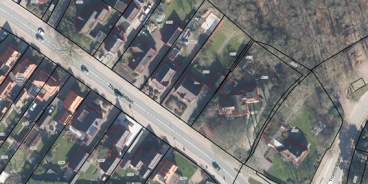 Het perceel waarop Thorbeckelaan 68 staat heeft een oppervlakte van 1185 m². Dit is een zeer groot perceel. De perceeloppervlakte wordt geregistreerd door het Kadaster. Gedetailleerde informatie over de maten van dit perceel kunt u vinden in het rapport Kadastrale kaart met maatvoering van Thorbeckelaan 68.