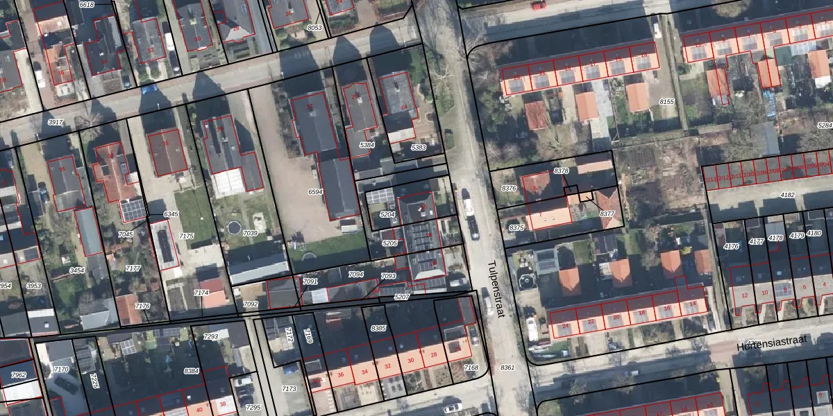 Het perceel waarop Tulpenstraat 16 staat heeft een oppervlakte van 205 m². Dit is een middelgroot perceel. De perceeloppervlakte wordt geregistreerd door het Kadaster. Gedetailleerde informatie over de maten van dit perceel kunt u vinden in het rapport Kadastrale kaart met maatvoering van Tulpenstraat 16.