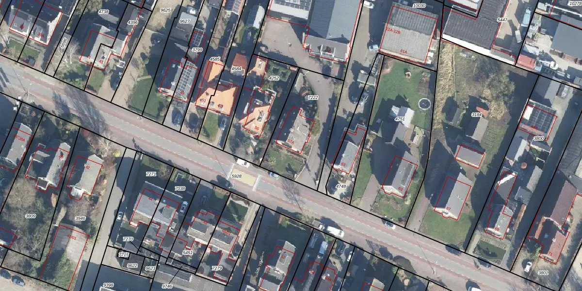 Gebruik de zoekbalk of klik op een perceel voor informatie over de adressen binnen dit perceel.