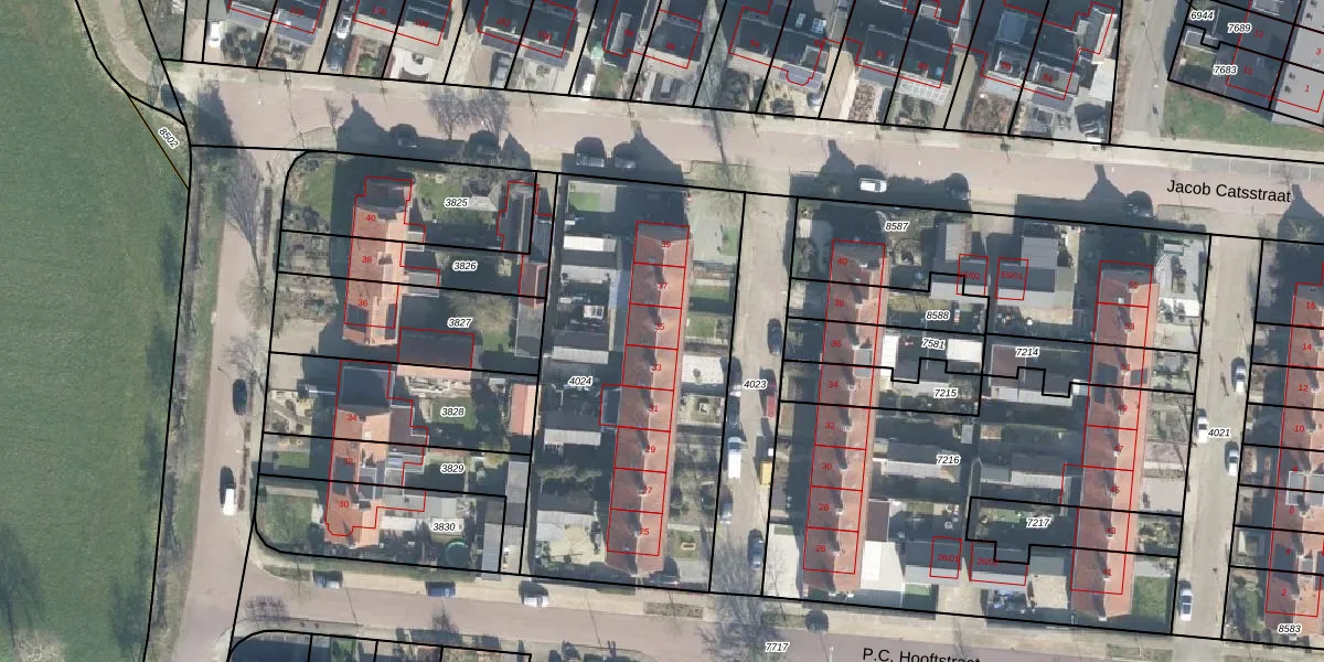 Het perceel waarop Van Lennepstraat 35 staat heeft een oppervlakte van 1770 m². Dit is een zeer groot perceel. De perceeloppervlakte wordt geregistreerd door het Kadaster. Gedetailleerde informatie over de maten van dit perceel kunt u vinden in het rapport Kadastrale kaart met maatvoering van Van Lennepstraat 35.
