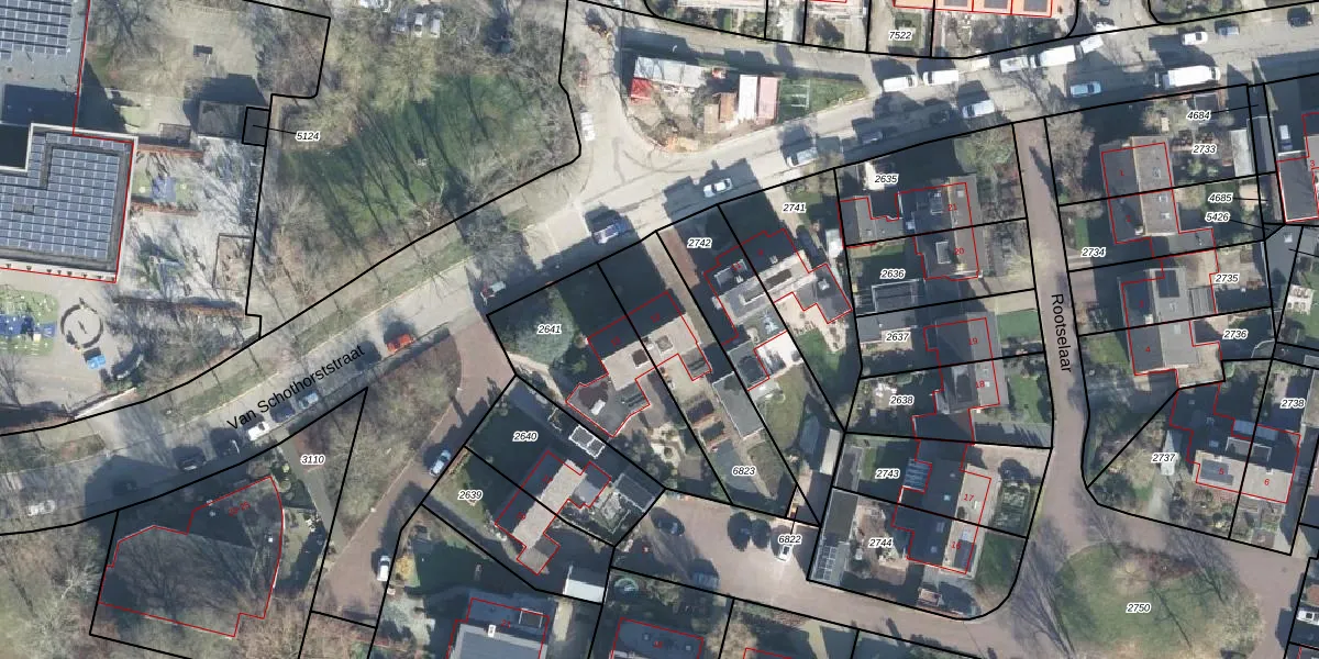Van Schothorststraat 13 is gelegen op kadastraal perceel BNV00E6823. Deze kadastrale aanduiding is uniek en wordt gebruikt door het Kadaster om eigendomsrechten en andere zakelijke rechten vast te leggen. Het perceel maakt onderdeel uit van de kadastrale gemeente Barneveld.