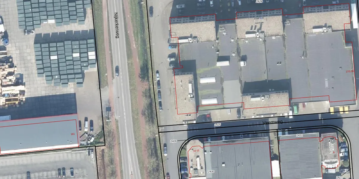 Het perceel waarop Veemweg 19-4 staat heeft een oppervlakte van 1,2 ha. Dit is een zeer groot perceel. De perceeloppervlakte wordt geregistreerd door het Kadaster. Gedetailleerde informatie over de maten van dit perceel kunt u vinden in het rapport Kadastrale kaart met maatvoering van Veemweg 19-4.