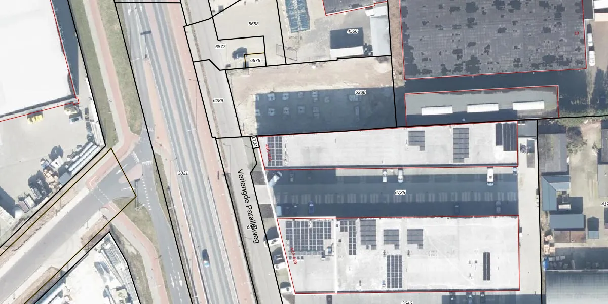 Het perceel waarop Verlengde Parallelweg 4-03 staat heeft een oppervlakte van 5953 m². Dit is een zeer groot perceel. De perceeloppervlakte wordt geregistreerd door het Kadaster. Gedetailleerde informatie over de maten van dit perceel kunt u vinden in het rapport Kadastrale kaart met maatvoering van Verlengde Parallelweg 4-03.