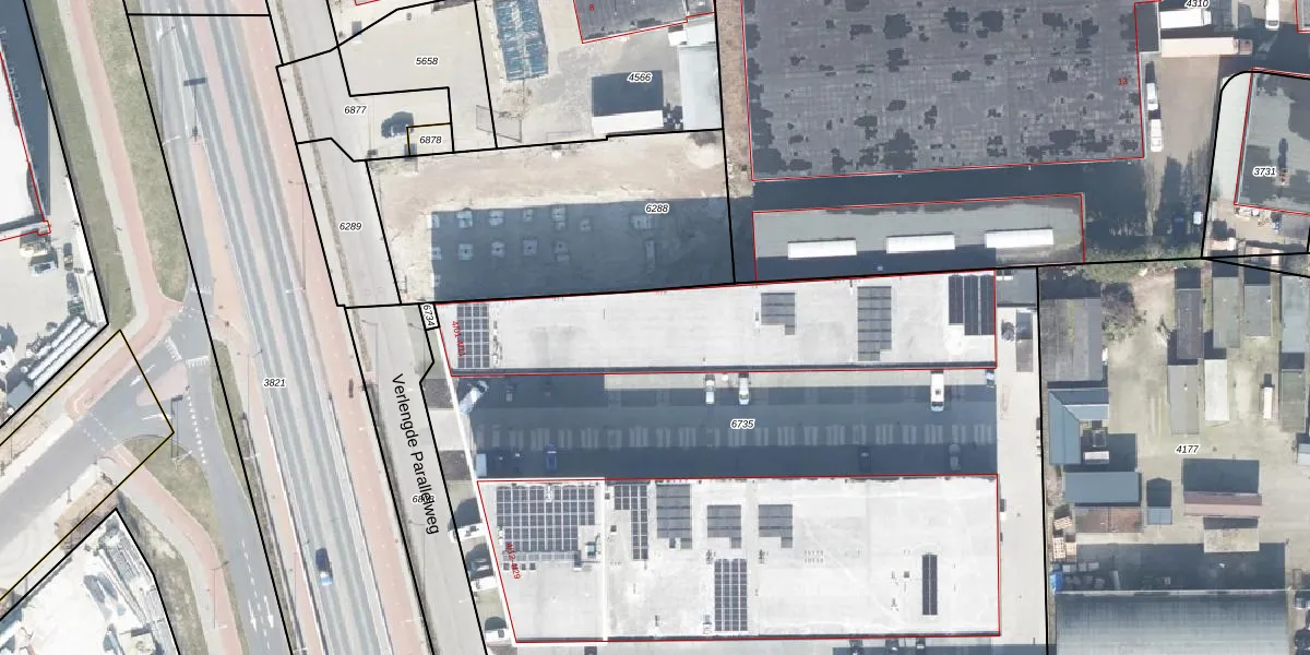 Het perceel waarop Verlengde Parallelweg 4-05 staat heeft een oppervlakte van 5953 m². Dit is een zeer groot perceel. De perceeloppervlakte wordt geregistreerd door het Kadaster. Gedetailleerde informatie over de maten van dit perceel kunt u vinden in het rapport Kadastrale kaart met maatvoering van Verlengde Parallelweg 4-05.