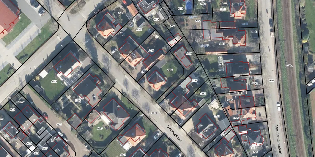 Verlooplaan 12 is gelegen op kadastraal perceel BNV00B2185. Deze kadastrale aanduiding is uniek en wordt gebruikt door het Kadaster om eigendomsrechten en andere zakelijke rechten vast te leggen. Het perceel maakt onderdeel uit van de kadastrale gemeente Barneveld.