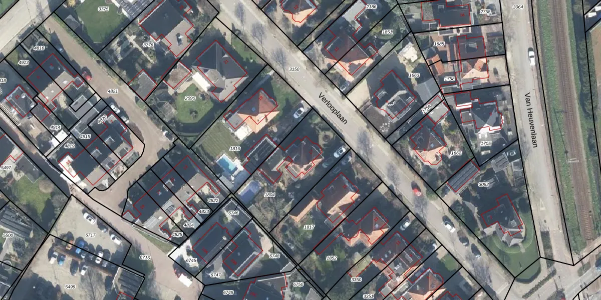 Het perceel waarop Verlooplaan 17 staat heeft een oppervlakte van 701 m². Dit is een groot perceel. De perceeloppervlakte wordt geregistreerd door het Kadaster. Gedetailleerde informatie over de maten van dit perceel kunt u vinden in het rapport Kadastrale kaart met maatvoering van Verlooplaan 17.