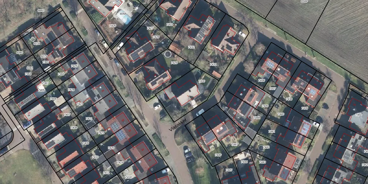 Het perceel waarop Vlasakker 1 staat heeft een oppervlakte van 525 m². Dit is een groot perceel. De perceeloppervlakte wordt geregistreerd door het Kadaster. Gedetailleerde informatie over de maten van dit perceel kunt u vinden in het rapport Kadastrale kaart met maatvoering van Vlasakker 1.