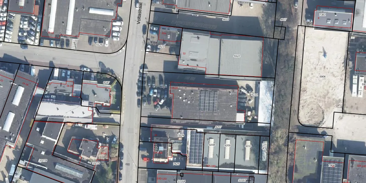 Het perceel waarop Voltastraat 18-A staat heeft een oppervlakte van 1795 m². Dit is een zeer groot perceel. De perceeloppervlakte wordt geregistreerd door het Kadaster. Gedetailleerde informatie over de maten van dit perceel kunt u vinden in het rapport Kadastrale kaart met maatvoering van Voltastraat 18-A.