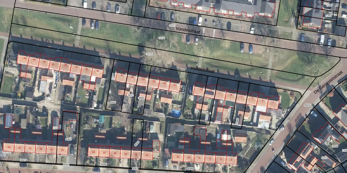 Het perceel waarop Vondelstraat 17 staat heeft een oppervlakte van 8203 m². Dit is een zeer groot perceel. De perceeloppervlakte wordt geregistreerd door het Kadaster. Gedetailleerde informatie over de maten van dit perceel kunt u vinden in het rapport Kadastrale kaart met maatvoering van Vondelstraat 17.