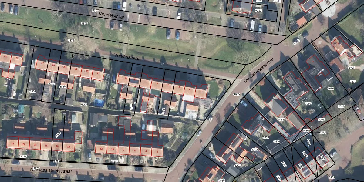 Het perceel waarop Vondelstraat 5 staat heeft een oppervlakte van 8203 m². Dit is een zeer groot perceel. De perceeloppervlakte wordt geregistreerd door het Kadaster. Gedetailleerde informatie over de maten van dit perceel kunt u vinden in het rapport Kadastrale kaart met maatvoering van Vondelstraat 5.