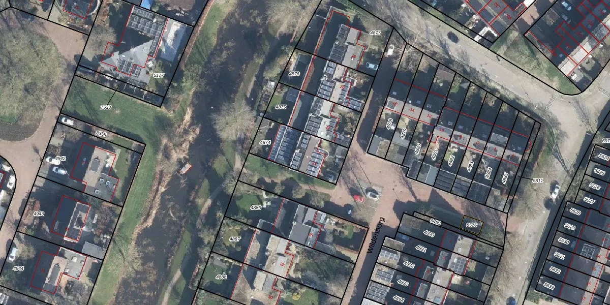 Gebruik de zoekbalk of klik op een perceel voor informatie over de adressen binnen dit perceel.