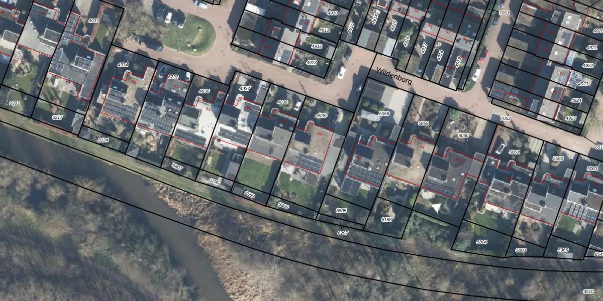Het perceel waarop Wildenborg 60 staat heeft een oppervlakte van 581 m². Dit is een groot perceel. De perceeloppervlakte wordt geregistreerd door het Kadaster. Gedetailleerde informatie over de maten van dit perceel kunt u vinden in het rapport Kadastrale kaart met maatvoering van Wildenborg 60.