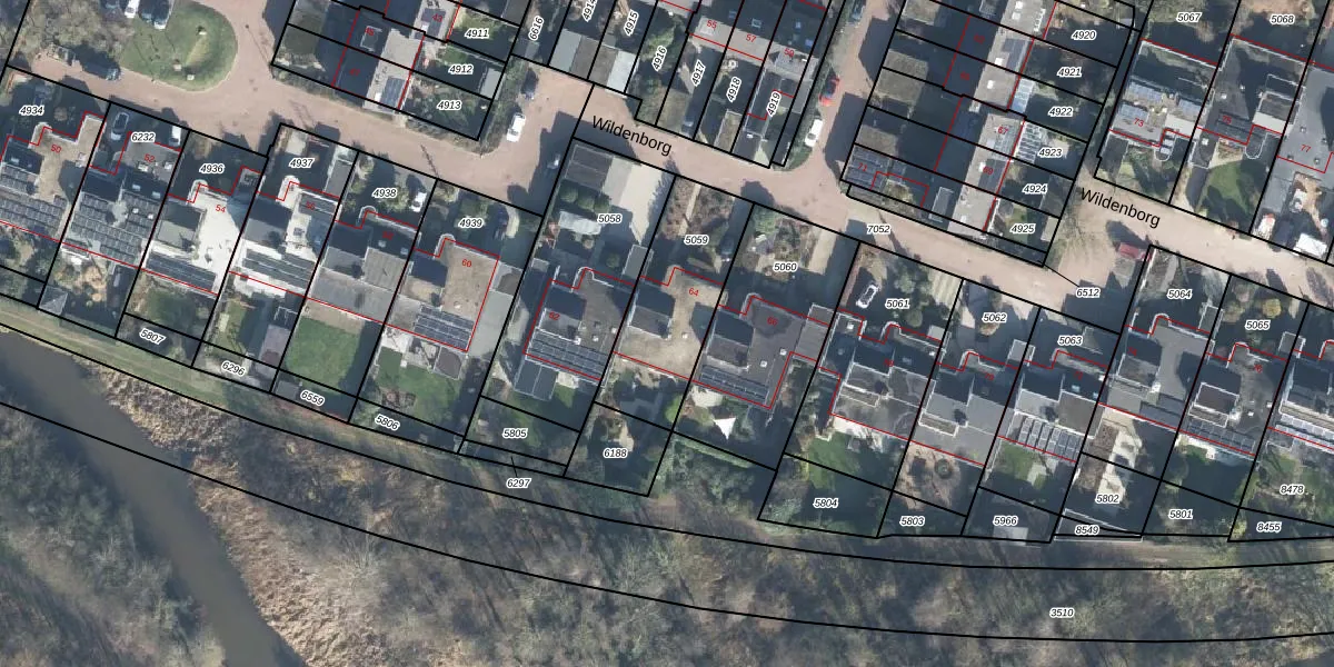 Het perceel waarop Wildenborg 64 staat heeft een oppervlakte van 453 m². Dit is een groot perceel. De perceeloppervlakte wordt geregistreerd door het Kadaster. Gedetailleerde informatie over de maten van dit perceel kunt u vinden in het rapport Kadastrale kaart met maatvoering van Wildenborg 64.