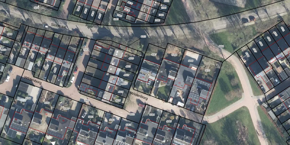 Gebruik de zoekbalk of klik op een perceel voor informatie over de adressen binnen dit perceel.