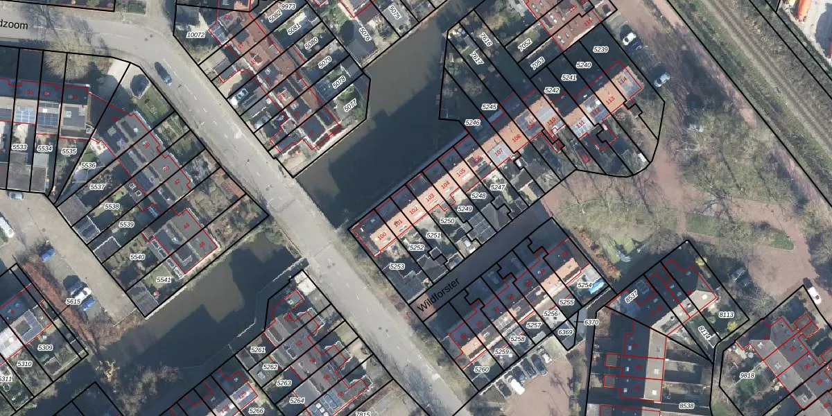 Gebruik de zoekbalk of klik op een perceel voor informatie over de adressen binnen dit perceel.