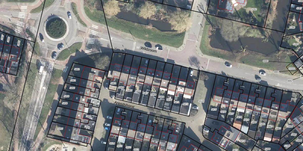 Gebruik de zoekbalk of klik op een perceel voor informatie over de adressen binnen dit perceel.