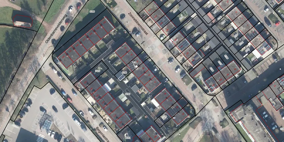Zonnebloemstraat 45 is gelegen op kadastraal perceel BNV00G8290. Deze kadastrale aanduiding is uniek en wordt gebruikt door het Kadaster om eigendomsrechten en andere zakelijke rechten vast te leggen. Het perceel maakt onderdeel uit van de kadastrale gemeente Barneveld.