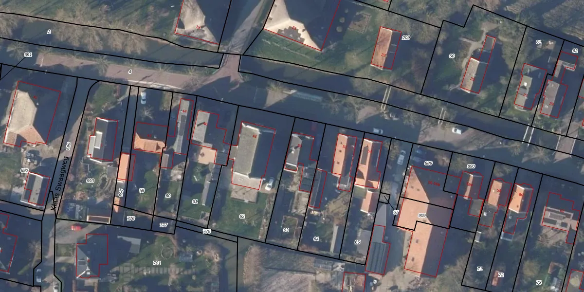 Gebruik de zoekbalk of klik op een perceel voor informatie over de adressen binnen dit perceel.