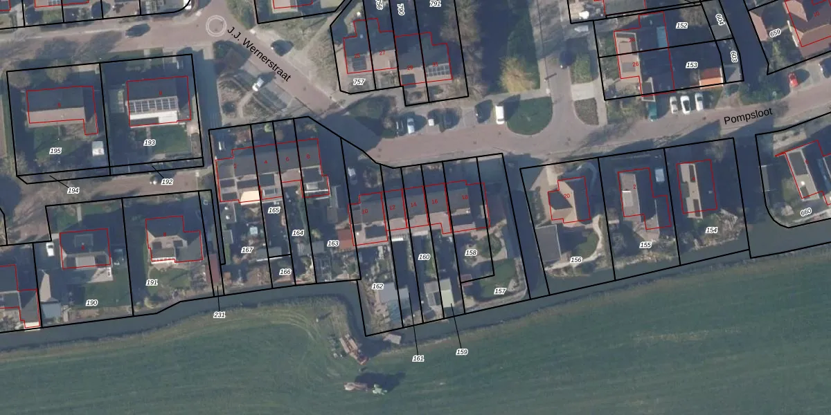 Het perceel waarop J.J. Wernerstraat 14 staat heeft een oppervlakte van 193 m². Dit is een middelgroot perceel. De perceeloppervlakte wordt geregistreerd door het Kadaster. Gedetailleerde informatie over de maten van dit perceel kunt u vinden in het rapport Kadastrale kaart met maatvoering van J.J. Wernerstraat 14.