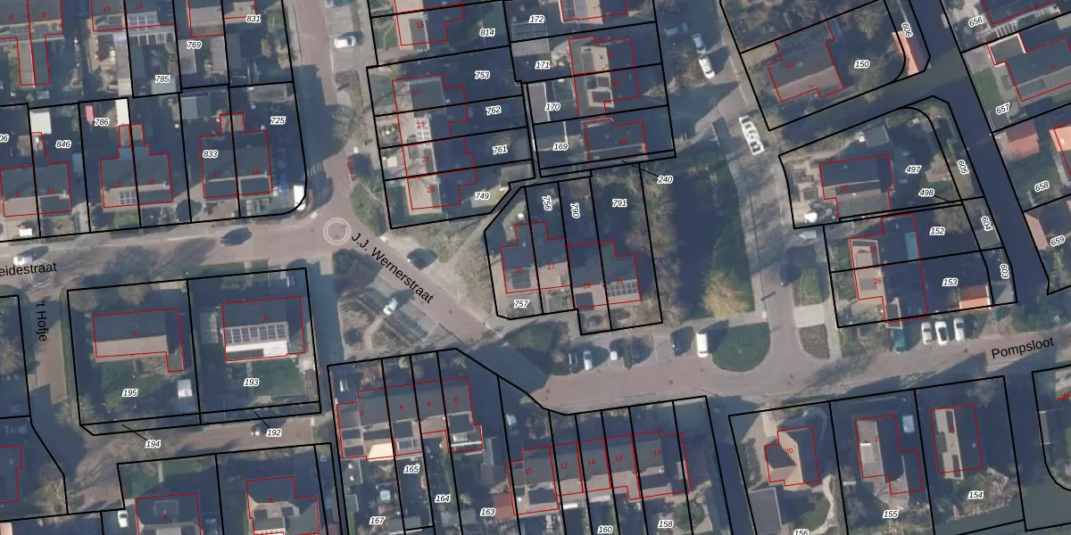 Het perceel waarop J.J. Wernerstraat 25 staat heeft een oppervlakte van 180 m². Dit is een middelgroot perceel. De perceeloppervlakte wordt geregistreerd door het Kadaster. Gedetailleerde informatie over de maten van dit perceel kunt u vinden in het rapport Kadastrale kaart met maatvoering van J.J. Wernerstraat 25.
