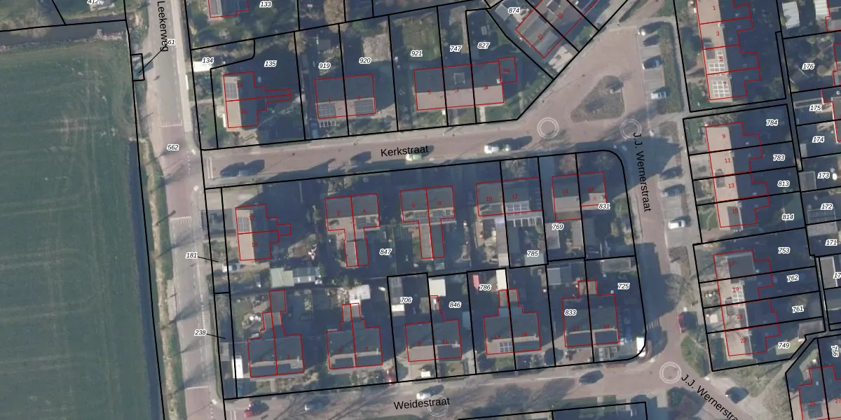 Het perceel waarop Kerkstraat 6 staat heeft een oppervlakte van 2877 m². Dit is een zeer groot perceel. De perceeloppervlakte wordt geregistreerd door het Kadaster. Gedetailleerde informatie over de maten van dit perceel kunt u vinden in het rapport Kadastrale kaart met maatvoering van Kerkstraat 6.