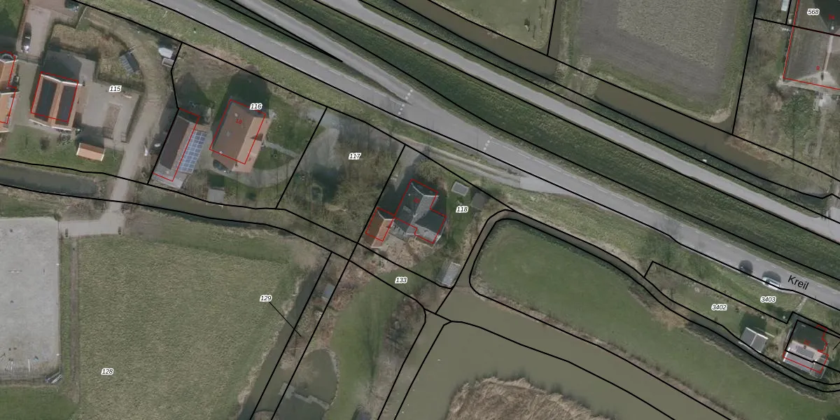 Het perceel waarop Kreil 20 staat heeft een oppervlakte van 655 m². Dit is een groot perceel. De perceeloppervlakte wordt geregistreerd door het Kadaster. Gedetailleerde informatie over de maten van dit perceel kunt u vinden in het rapport Kadastrale kaart met maatvoering van Kreil 20.