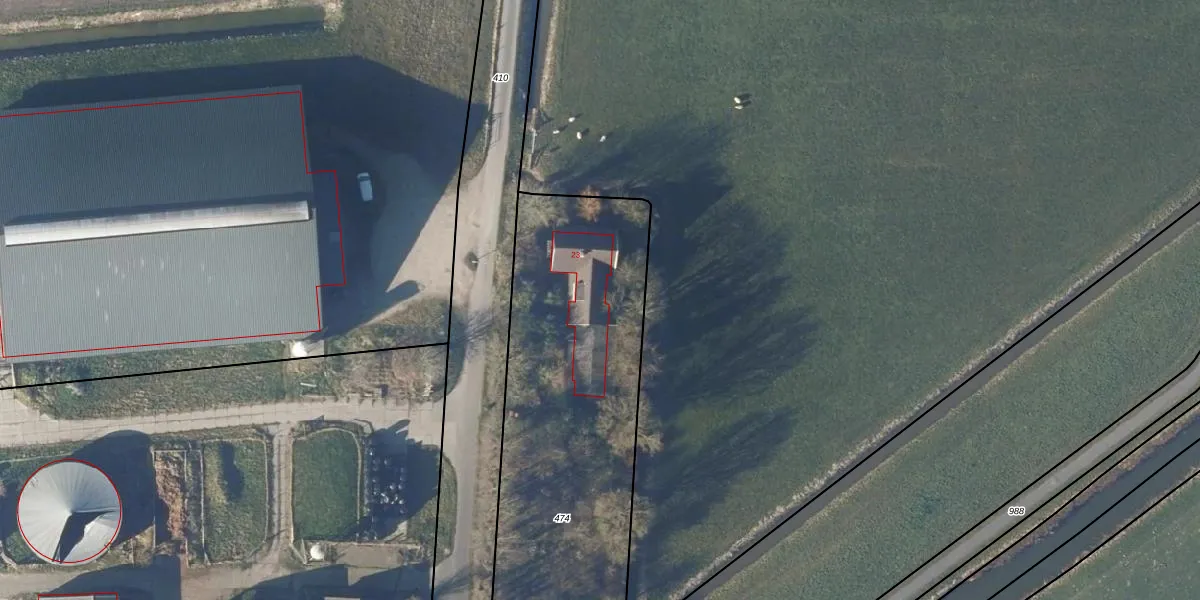 Het perceel waarop het adres ligt is BSG00-G-474. De afkorting 'BSG00' staat voor kadastrale gemeente Barsingerhorn. Het perceel is 1870 m² groot. Dat is kleiner dan de gemiddelde perceeloppervlakte in Barsingerhorn, dat op 7037,45 m² ligt. De grootste perceeloppervlakte in de kadastrale gemeente is 22,1 ha. De kleinste oppervlakte bedraagt 0 m². Op het perceel bevinden zich geen andere adressen. In de Basisregistratie Kadaster (BRK) werden de grenzen van het perceel geregistreerd op 30-11-2001.