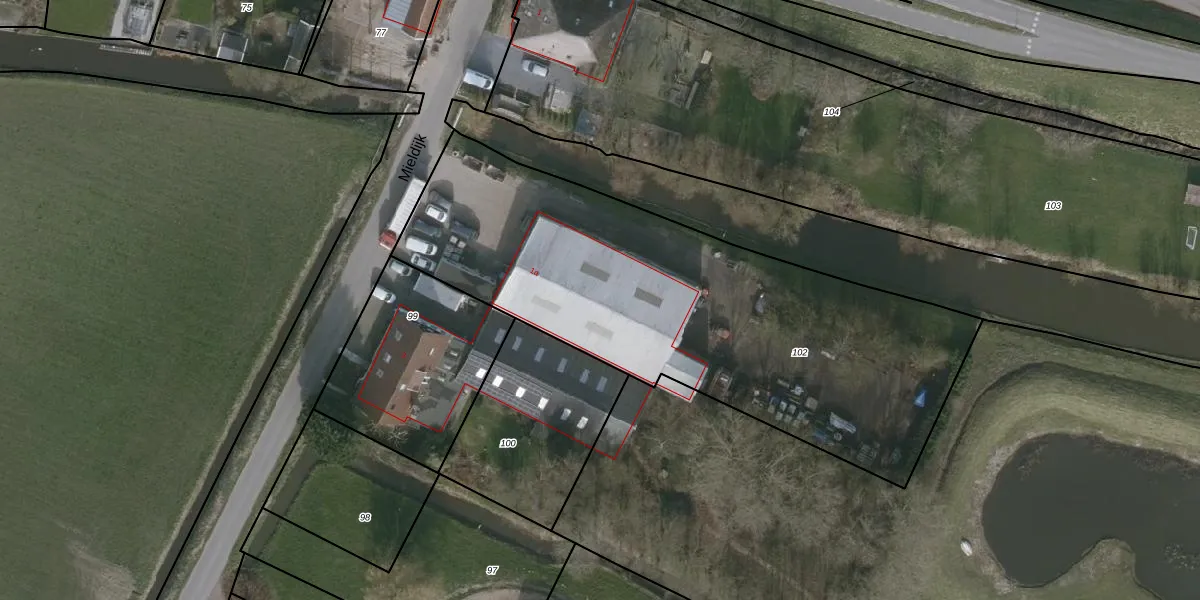 Het perceel waarop Mieldijk 1-a staat heeft een oppervlakte van 2445 m². Dit is een zeer groot perceel. De perceeloppervlakte wordt geregistreerd door het Kadaster. Gedetailleerde informatie over de maten van dit perceel kunt u vinden in het rapport Kadastrale kaart met maatvoering van Mieldijk 1-a.