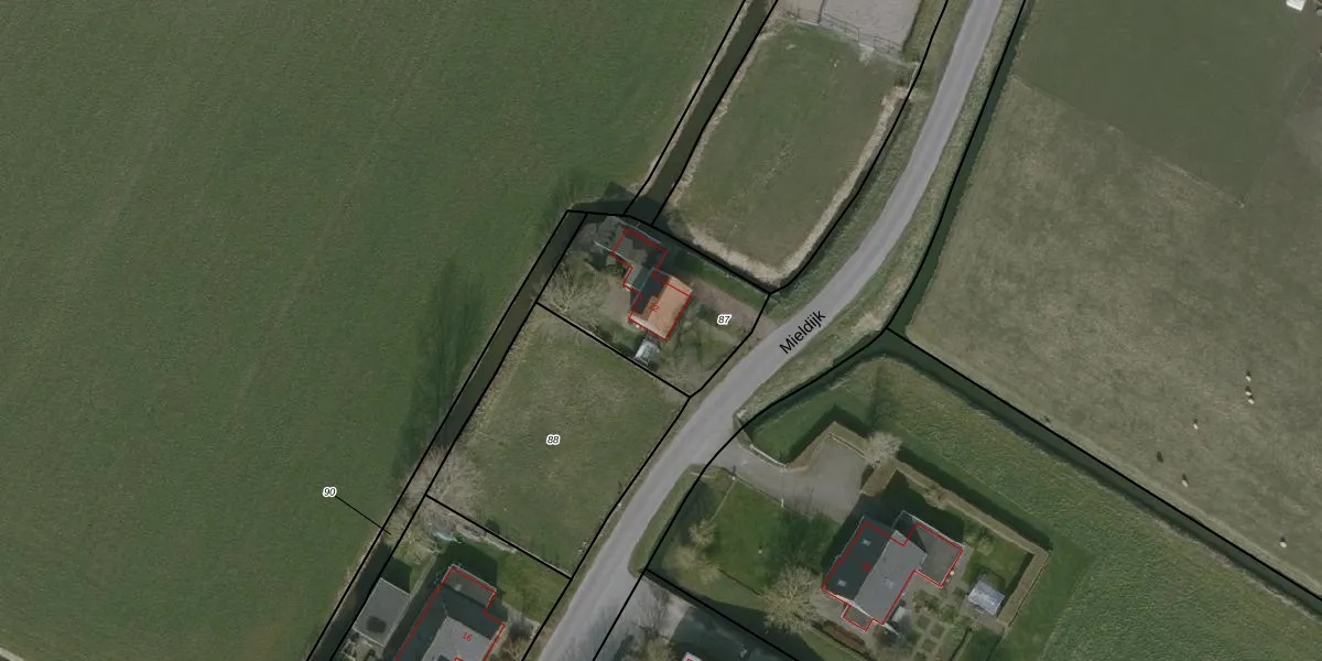 Het perceel waarop Mieldijk 12 staat heeft een oppervlakte van 555 m². Dit is een groot perceel. De perceeloppervlakte wordt geregistreerd door het Kadaster. Gedetailleerde informatie over de maten van dit perceel kunt u vinden in het rapport Kadastrale kaart met maatvoering van Mieldijk 12.