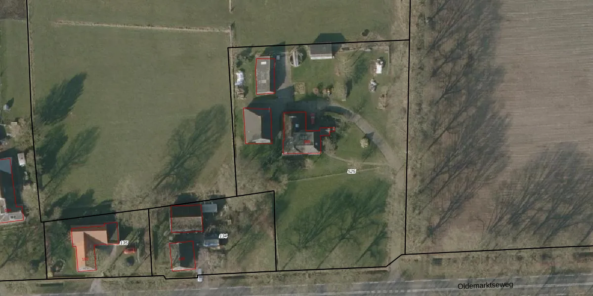 Het perceel waarop Oldemarktseweg 188 staat heeft een oppervlakte van 4070 m². Dit is een zeer groot perceel. De perceeloppervlakte wordt geregistreerd door het Kadaster. Gedetailleerde informatie over de maten van dit perceel kunt u vinden in het rapport Kadastrale kaart met maatvoering van Oldemarktseweg 188.