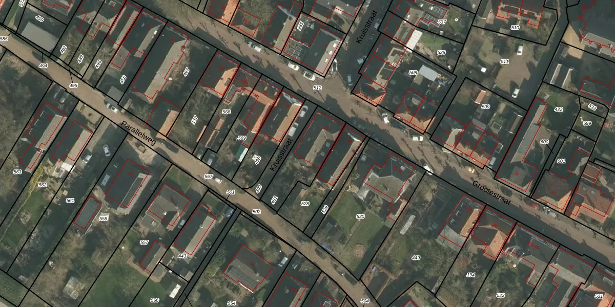 Het perceel waarop Grootestraat 24 staat heeft een oppervlakte van 355 m². Dit is een groot perceel. De perceeloppervlakte wordt geregistreerd door het Kadaster. Gedetailleerde informatie over de maten van dit perceel kunt u vinden in het rapport Kadastrale kaart met maatvoering van Grootestraat 24.