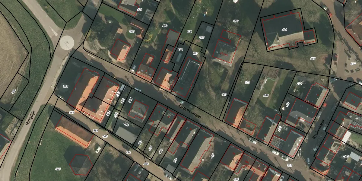 Grootestraat 7 is gelegen op kadastraal perceel BTB00D627. Deze kadastrale aanduiding is uniek en wordt gebruikt door het Kadaster om eigendomsrechten en andere zakelijke rechten vast te leggen. Het perceel maakt onderdeel uit van de kadastrale gemeente Batenburg.