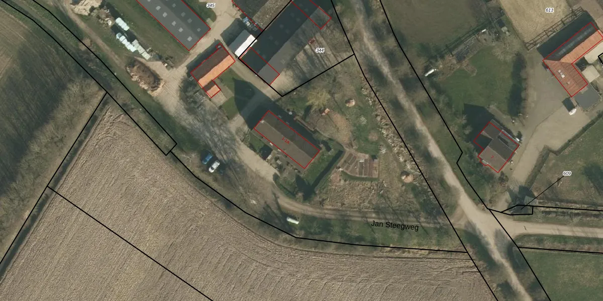 Jan Steegweg 1-A is gelegen op kadastraal perceel BTB00E345. Deze kadastrale aanduiding is uniek en wordt gebruikt door het Kadaster om eigendomsrechten en andere zakelijke rechten vast te leggen. Het perceel maakt onderdeel uit van de kadastrale gemeente Batenburg.