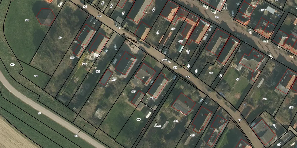 Parallelweg 6 is gelegen op kadastraal perceel BTB00D557. Deze kadastrale aanduiding is uniek en wordt gebruikt door het Kadaster om eigendomsrechten en andere zakelijke rechten vast te leggen. Het perceel maakt onderdeel uit van de kadastrale gemeente Batenburg.