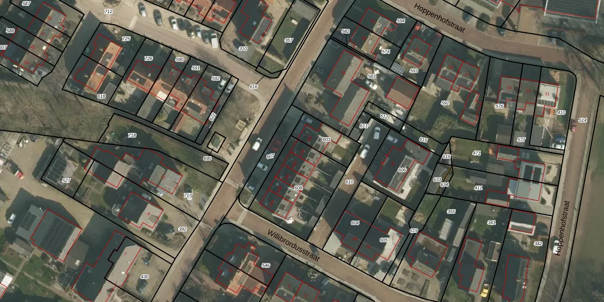 Het adres is gelegen op perceel 608 in de sectie D en de kadastrale gemeente Batenburg. De kadastrale aanduiding is aldus BTB00-D-608. Het perceel is 610 m² groot. Dat is kleiner dan de gemiddelde perceeloppervlakte in Batenburg, dat op 1,1 ha ligt. De grootste perceeloppervlakte in de kadastrale gemeente is 21,9 ha. De kleinste oppervlakte bedraagt 2 m². Er zijn 5 adressen aanwezig op het perceel. De huidige grenzen van het perceel zijn digitaal in de Basisregistratie Kadaster (BRK) geregistreerd op 20-06-2024.