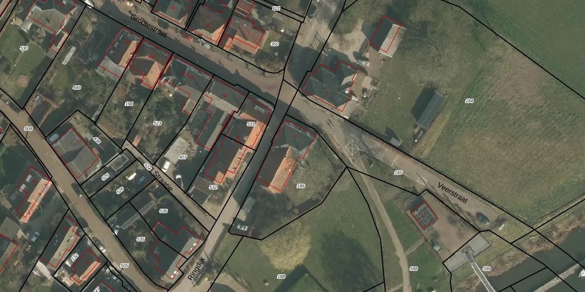Het perceel waarop Veerstraat 2 staat heeft een oppervlakte van 860 m². Dit is een groot perceel. De perceeloppervlakte wordt geregistreerd door het Kadaster. Gedetailleerde informatie over de maten van dit perceel kunt u vinden in het rapport Kadastrale kaart met maatvoering van Veerstraat 2.