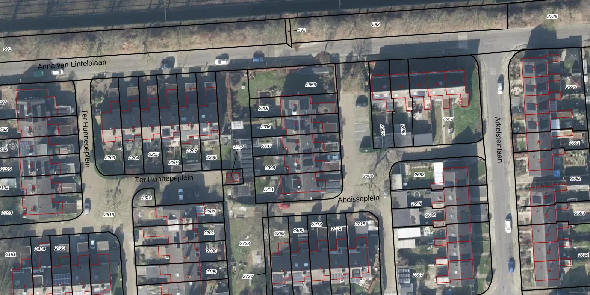 Het perceel waarop Abdisseplein 15 staat heeft een oppervlakte van 197 m². Dit is een middelgroot perceel. De perceeloppervlakte wordt geregistreerd door het Kadaster. Gedetailleerde informatie over de maten van dit perceel kunt u vinden in het rapport Kadastrale kaart met maatvoering van Abdisseplein 15.