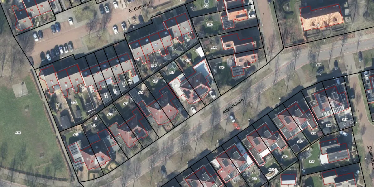 Gebruik de zoekbalk of klik op een perceel voor informatie over de adressen binnen dit perceel.