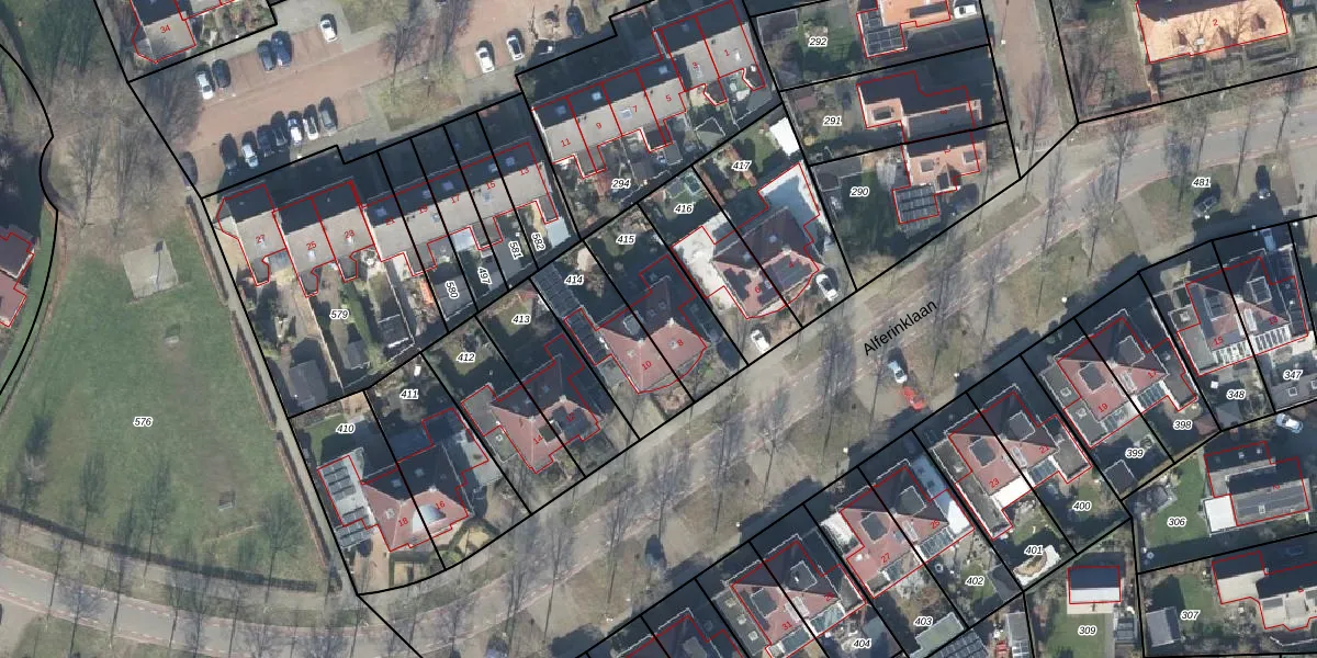 Het perceel waarop Alferinklaan 8 staat heeft een oppervlakte van 300 m². Dit is een groot perceel. De perceeloppervlakte wordt geregistreerd door het Kadaster. Gedetailleerde informatie over de maten van dit perceel kunt u vinden in het rapport Kadastrale kaart met maatvoering van Alferinklaan 8.