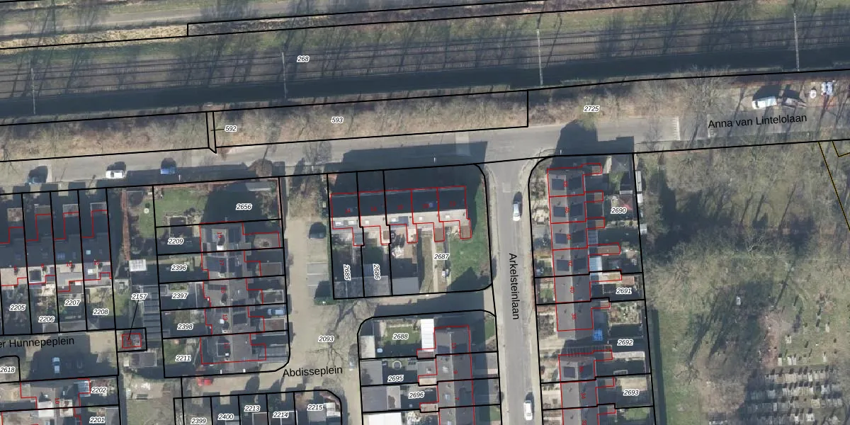 Het perceel waarop Anna van Lintelolaan 20 staat heeft een oppervlakte van 696 m². Dit is een groot perceel. De perceeloppervlakte wordt geregistreerd door het Kadaster. Gedetailleerde informatie over de maten van dit perceel kunt u vinden in het rapport Kadastrale kaart met maatvoering van Anna van Lintelolaan 20.